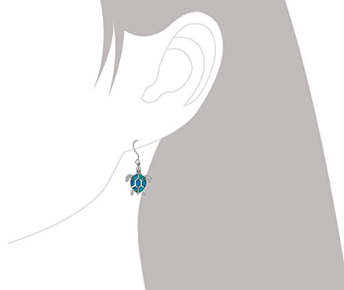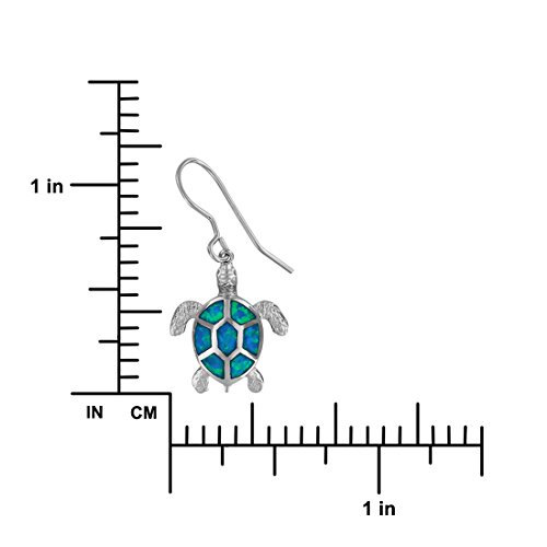 Beautiful turtle dangle earrings with aqua colored synthetic opal inlay and French wire backing. Turtle measures 5/8 inch (0.63 inch) tall and 9/16 inch (0.56 inch) wide. Rhodium plated sterling silver for superior quality and shine as well as anti-tarnish properties.