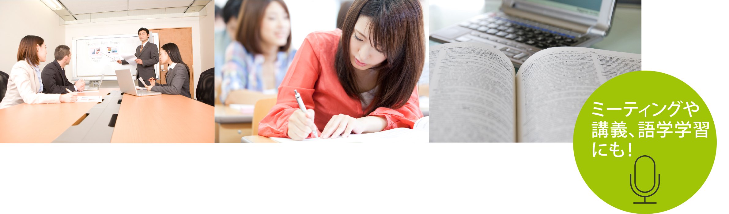 Because it can record with built-in microphone, it can be used in various scenes such as minutes of meetings and recording of lecture.