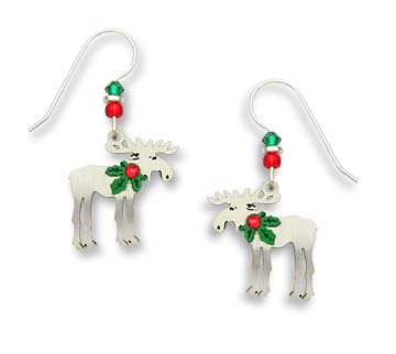 Christmas meese. Er, mooses. Okay, moose. About 1 3/8 inches long. Sterling silver ear wires. Made in Colorado for women who want the best. Not for children under 14. Sienna Sky is fun, casual jewelry that is comfortable to wear and crafted to last. Each piece is carefully designed by Colorado artist, Barbara MacCambridge to capture her love of animals and nature. You'll also find many other designs that reflect her appreciation for the whimsical and fun to wear. Jewelry is etched from copper/nickel/zinc alloy, brass and copper. Pieces may be polished, brushed or have color applied to them. Each item is completed by adding Austrian crystals, glass beads or stones. We use only sterling silver ear wires and surgical steel posts.Feature