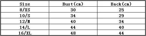 Size:8/XS,10/S,12/M,14/L,16/XL