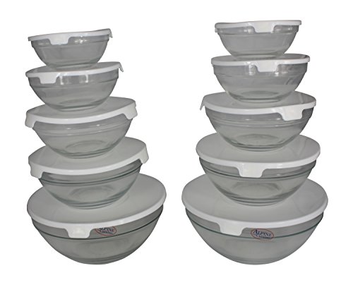 10-Piece Nested Glass Bowl Set [Set of 2] Color: White