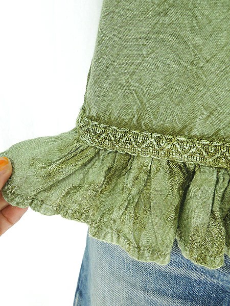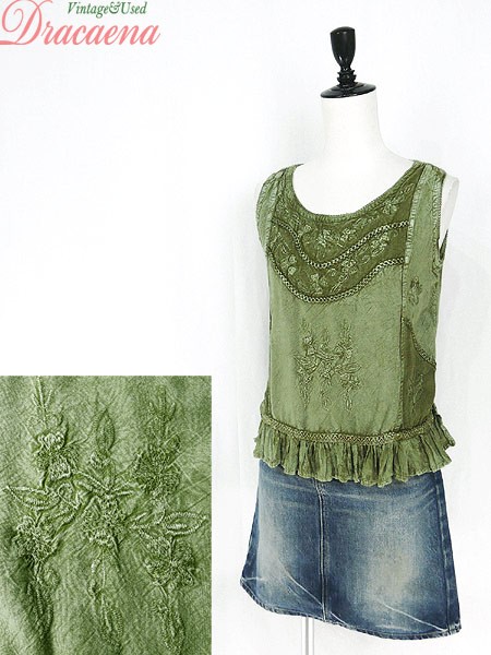 Ladies ブランド- カラーオリーブ メール便不可 コンディション★★★ 素材レーヨン 表記サイズFREE SIZE 実寸サイズ 着丈 50 cm 身幅 42 cm 肩幅 30 cm ※ウエスト・ヒップ以外は平置き採寸