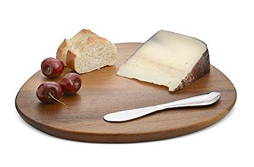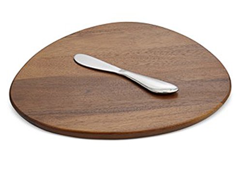 Smooth, organic lines in wood and stainless steel give the Cheese Board and Spreader set from Nambé