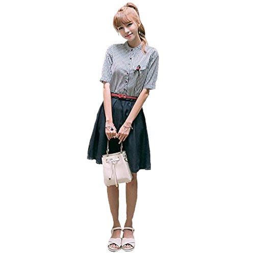-. Title : レディース ストライプ ワンピース シャツワンピ フレア スカート ブラウス トップス ボトムス 人気 春物 夏物 女性 大人 カジュアル おしゃれ きれいめ 清楚 上品 ファッション ネイビー S M L XL サイズ