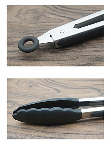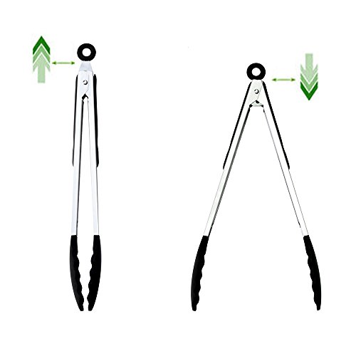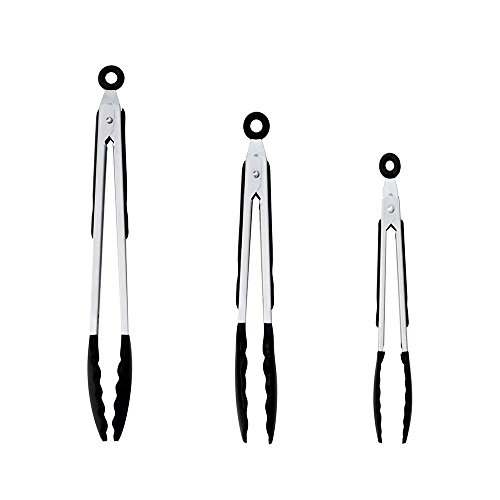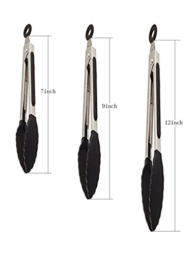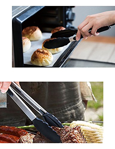 Jason&Aerobic Premium Stainless Steel Food Tong Sets with Heat Resistant Silicone Grips and Lock Ring Design for Kitchen,Grilling,Cooking,BBQ and More (Black,Pack of 3) (black)