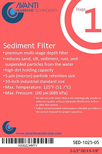 Stage 1 Sediment Filter for under-sink RO filtration drinking water system - 5 micron, 10 inch, 2.5" OD X 9-7/8" L (SED-1025-05X2), 2-Pack
