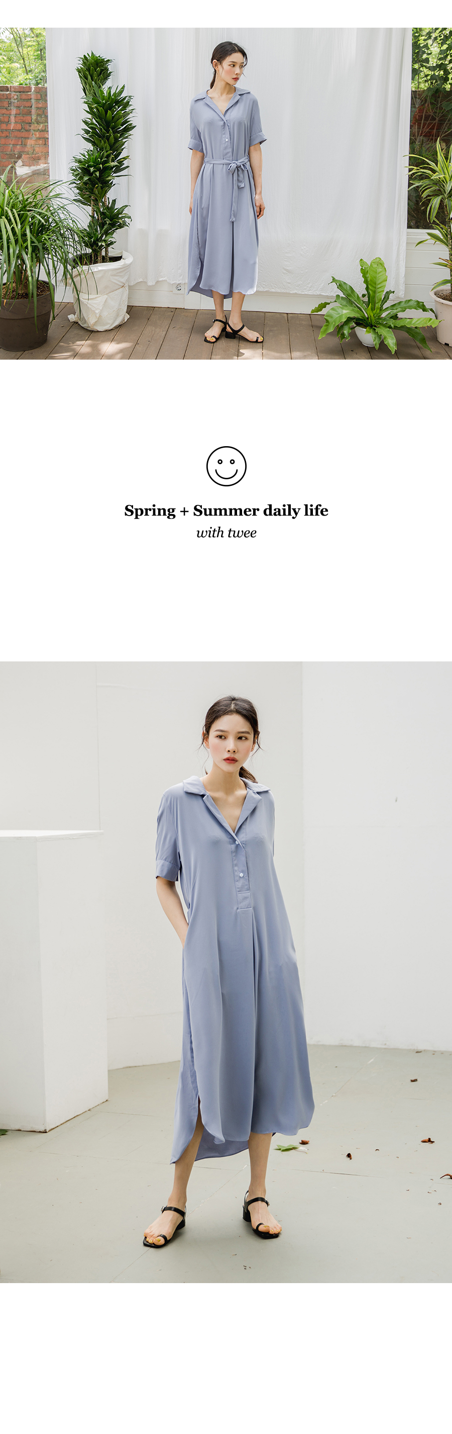 MD COMMENT베이직하면서도 시크한무드의플레인 카라원피스 입니다 전체적으로 여유있는 실루엣과 롱한 기장감으로 편안하게 착용하실 수 있구요 허리끈으로 허리라인을 슬림하게 연출하실 수 있어요 답답하지않게 사이드 트임,언발런스 디테일로 원피스 단품하나만으로도멋스러운 룩을 완성시켜주는 아이템이에요!
