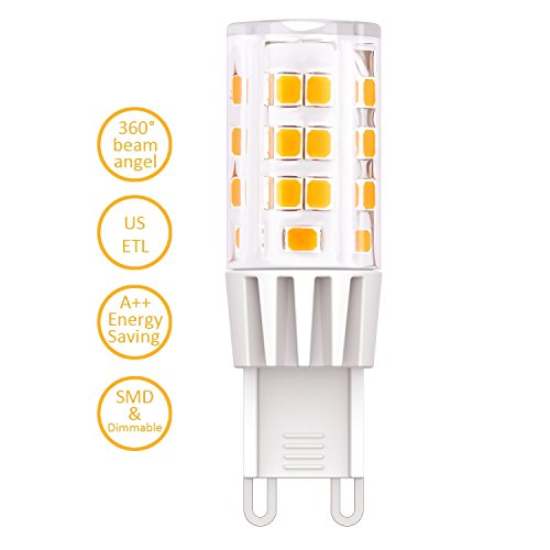 G9 LED bulb Benature 40W Halogen Replacement 3.5W AC120V 400lm 3000K Warm White Bi-pin 360 Beam Angle ETL Listed A++ Dimmable Pack of 4pcs for Pendants Chandeliers Lighting
