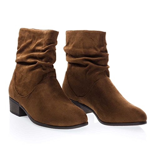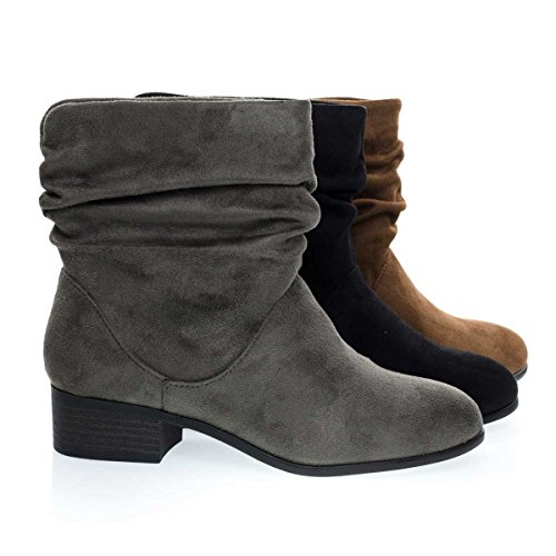 Binding : Apparel Product Description About This Shoes :Low block heel ankle boots features slouchy shaft, low chunky block heel, almond toe and chunky low heel and faux wooden stack heel. Brand - Soda Colors Available: Black, Cognac (brown) Taupe (gray) Occasion: Casual Shoe Type: Ankle Boots Shoe Style: Ankle Boots Inner Lining: synthetic Heel Height In Inches - 1.5 Heel Style - Block Toe Style - round-toe Platform Height In Inches - 0.25 Shaft Height In Inches - 6 Circumference Opening - n/a Strap Type - strapless Sole - manmade All Man Made Material unless otherwise stated. Computer/Phone/Table monitors might show color differently because of its quality or calibration, we suggest you look at the photo in at least 3 monitors if you need exact color match of your shoes. 0