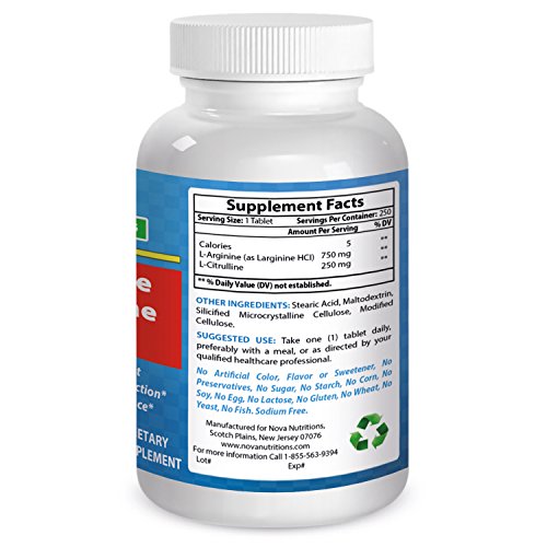 NOVA L ARGININE L CITRULLINE - L-Arginine / L-Citrulline Complex are two amino acids that are believed to have potential therapeutic uses. L Citrulline is a precursor of L-Arginine; it is converted into L-Arginine once inside the body thus increasing the benefits of L-Arginine. L-Arginine and L-Citrulline work together to support energy production, aid to improve athletic performance, and muscle mass, making it a great athletic supplement