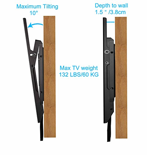-. Feature : Fits for most of 42-70" LCD/LED/Plasma TVs. Fits TVs with mounting holes as close 8" x 4"(200mmX100mm) as and as wide as 32" x 16" (800mmX400mm). Please check your TV's VESA (mounting hole pattern), stud spacing, TV weight and possible blocked cable/input (take left side picture as your reference) to determine whether this wall mount fits your TV and installation application P.R.Ior to making purchase decision. / Long wall plate fits from 16", 17", 18", 19", 24", 25", 26" and 32" studs plus concrete wall. Caution: This mount is NOT for dry wall alone installatoin! Easy for centering above your fire place (to accommodate different stud spacing) / Low profile 1.5" depth to wall and 0-10°tilting makes TV close to wall, gain better views angle and glare-reducing. / Strap designs for bracket easy safety locking and releasing. All hardware included for both wall and TV installation. / Constructed with heavy duty steel materials and with durable powder coated finish, and 100% welded by automatic robot.Advanced welding technology ensures stable, sturdy and safe use. Finish of the mount and all hardware is RoHS (Restriction of Hazardous Substance) certified.