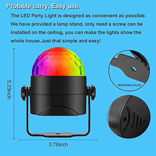 【Perfect for Home Party and Great Gift for kids】Powerful voice-activated sensor captures nearby sounds or music and changes color or speed with the music for any Parties . The disco light could be used on wedding, celebrations,birthday party, family or friend Home celebration party.Also It is a great night light and toys Gift for kids.