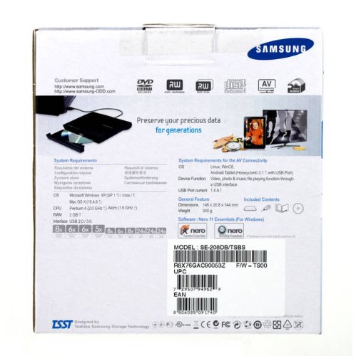 Samsung SE-208DB/TSBS 8X Slim DVD+/-RW Slim USB External Drive (Black)