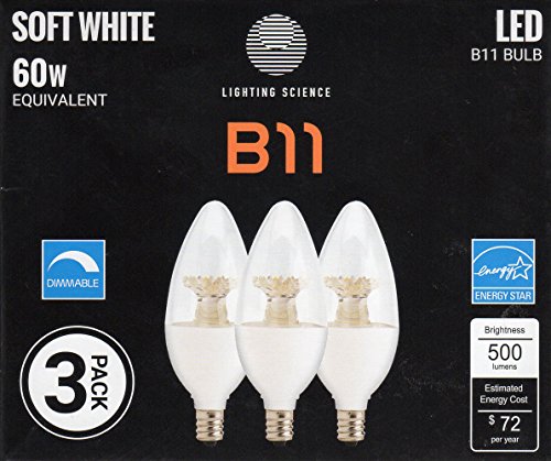 60W LED Clear B11 E17 3 Pack, Soft White, Dimmable Energy Star Rated Light Bulbs