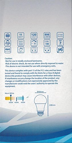 Premium Warm White Dimmable LED BULB A19 11W (60W Equivalent) 3000K - E26 UL-Listed - 10 PACK