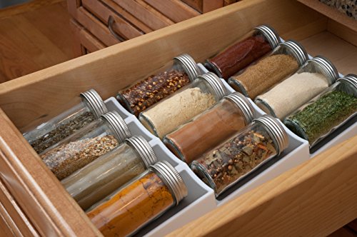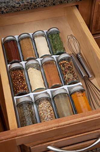 Find the spice you need right away with this convenient in-drawer organizer. Holds 12 bottles at a slight angle so you can easily see the labels.