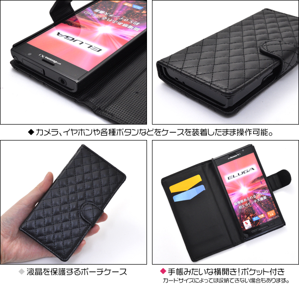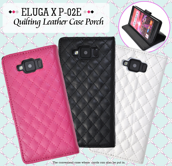 高級感溢れるELUGA X P-02E用キルティングレザーケースポーチ