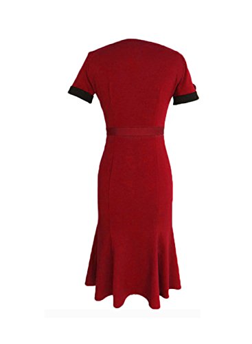 Retro 50s Color Block Short Sleeve Elegant Bow-knot Patchwork Bodycon Slim Fitted Casual Wear to Work Dress
