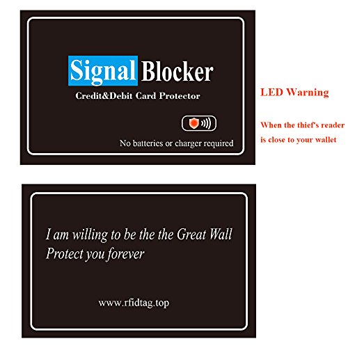 2) What is this blocking card made from ? The surface of this blocking card is a PVC material. Inside this blocking card is a piece of circuit board (With LED) rather than a tinfoil or aluminum.