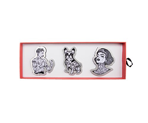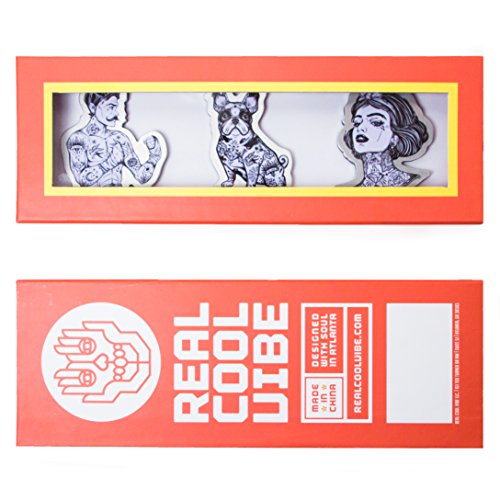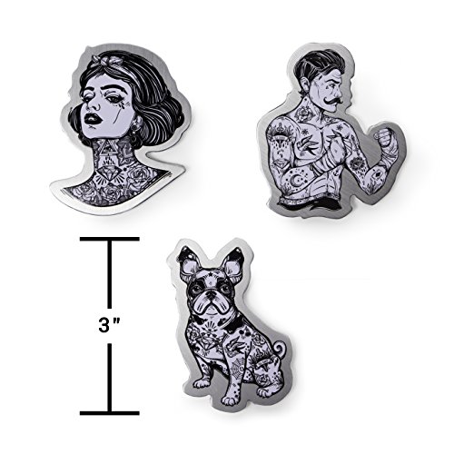 Premium Quality Aluminum Refrigerator Magnet Gift Set by Real Cool Vibe Featuring A Tattooed Man, Dog, and Woman