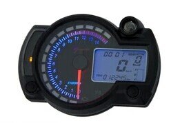 Studio : MXBAOHENG Publisher : MXBAOHENG Product Description The product usually takes 7--13 business days to arrive to your hand after your order is confirmed Description 1. Suitable for 1-cylinder,2-cylinder,4-cylinder motorcycle 2. Trie circumference:1000~2999 adjustable 3. Backlight color:Orange and Blue adjustable 4. Instrumented Function:Pointer indicates engine speed,LCD speed ,size mileage,time,oil level,123456 files Technical parameters 1. Speed:Max 199Km/h 2. Odometer:Max 99999.9km 3. Trip meter:Max 999.9km,can be reset 4. 24-hour real-time clock:can be adjusted by the functioning knob 5. Rev:Max 15000r/min 6. Alarming when rev is over 10000r/min 7. 5-segment fuel level:LCD display,alarming when fuel level is low 8. Gear position 1 to 6(LCD display) 9. Metric-inch interconversion via the function knob(LCD display) 10. Upper beam(blue) 11. Left and right blinker(green) Neutral gear(green) 12. LCD backlight(blue,normally on) 13. All backlight will automatically self check when electrified 14. Polarity:Unipolar Hall(s) 15. Pulse count:1~12 16. Wheel perimeter:1000~2999 17. Size:140*100*55mm(L*W*H) NOTE: we will send the product to you as soon as possible If you have any questions , please feel free to contact us