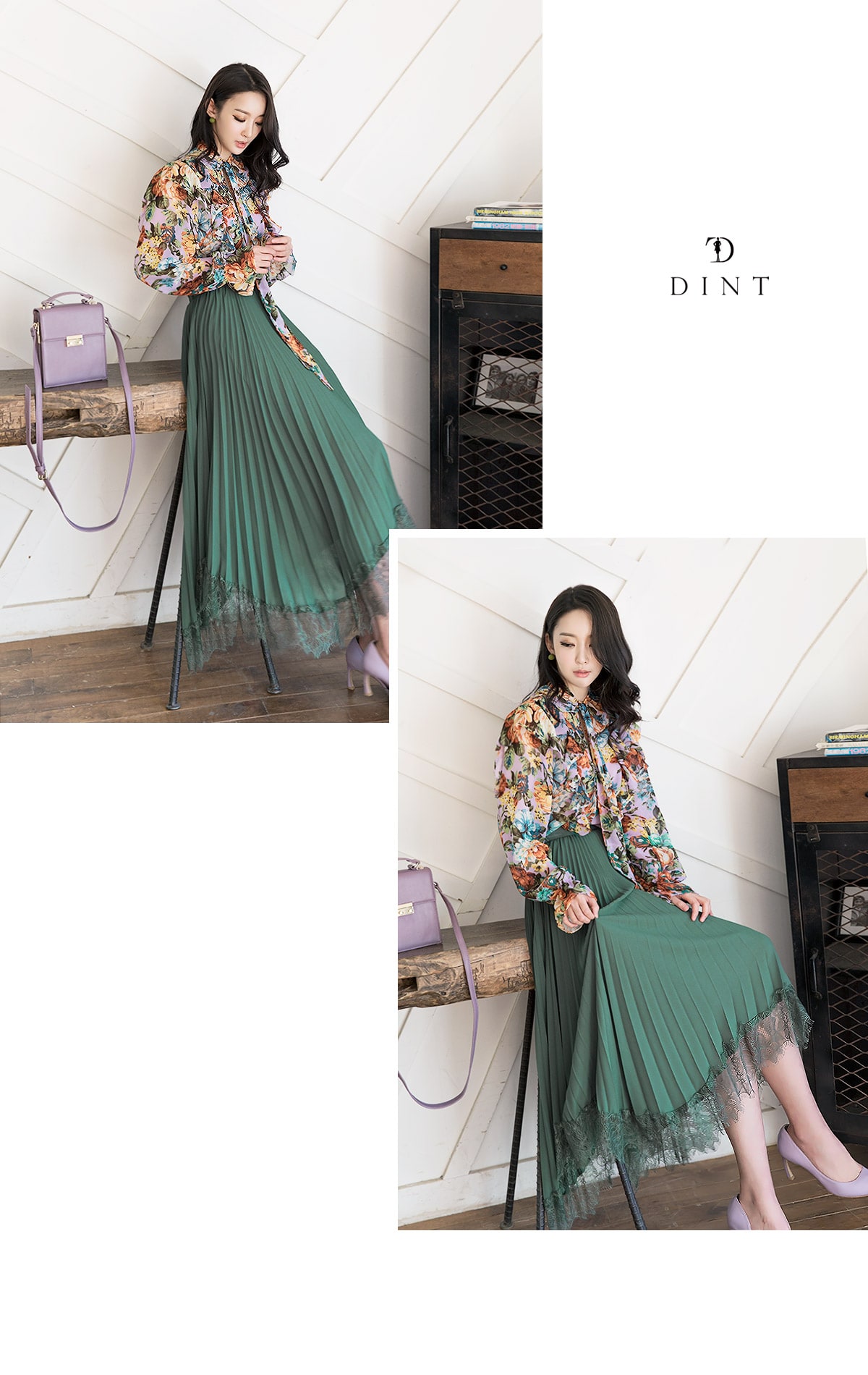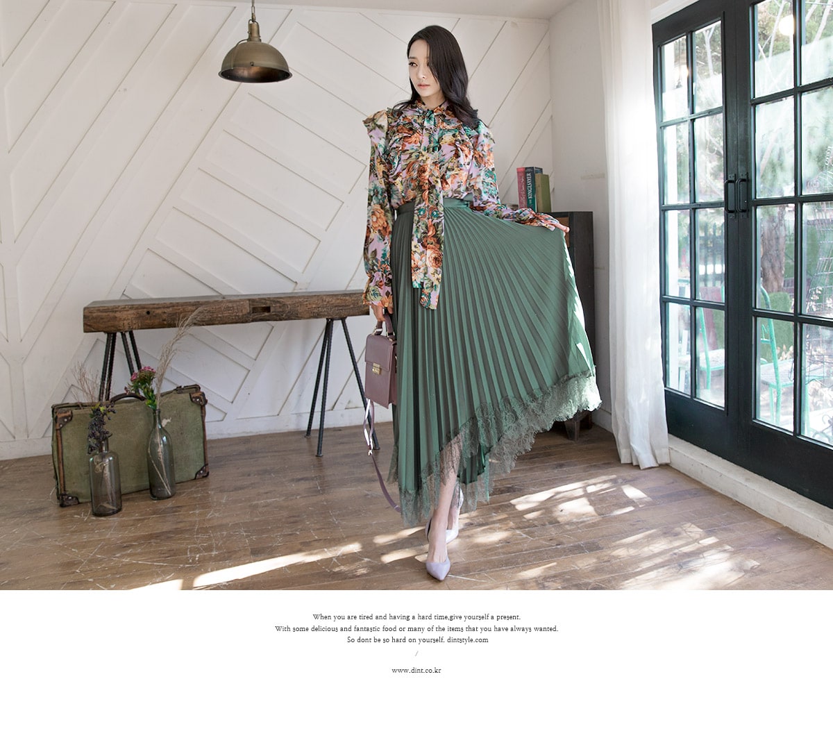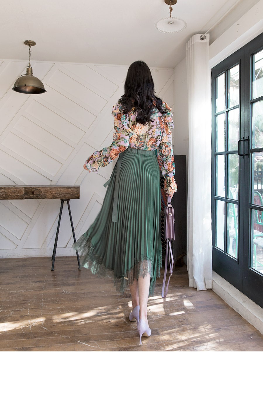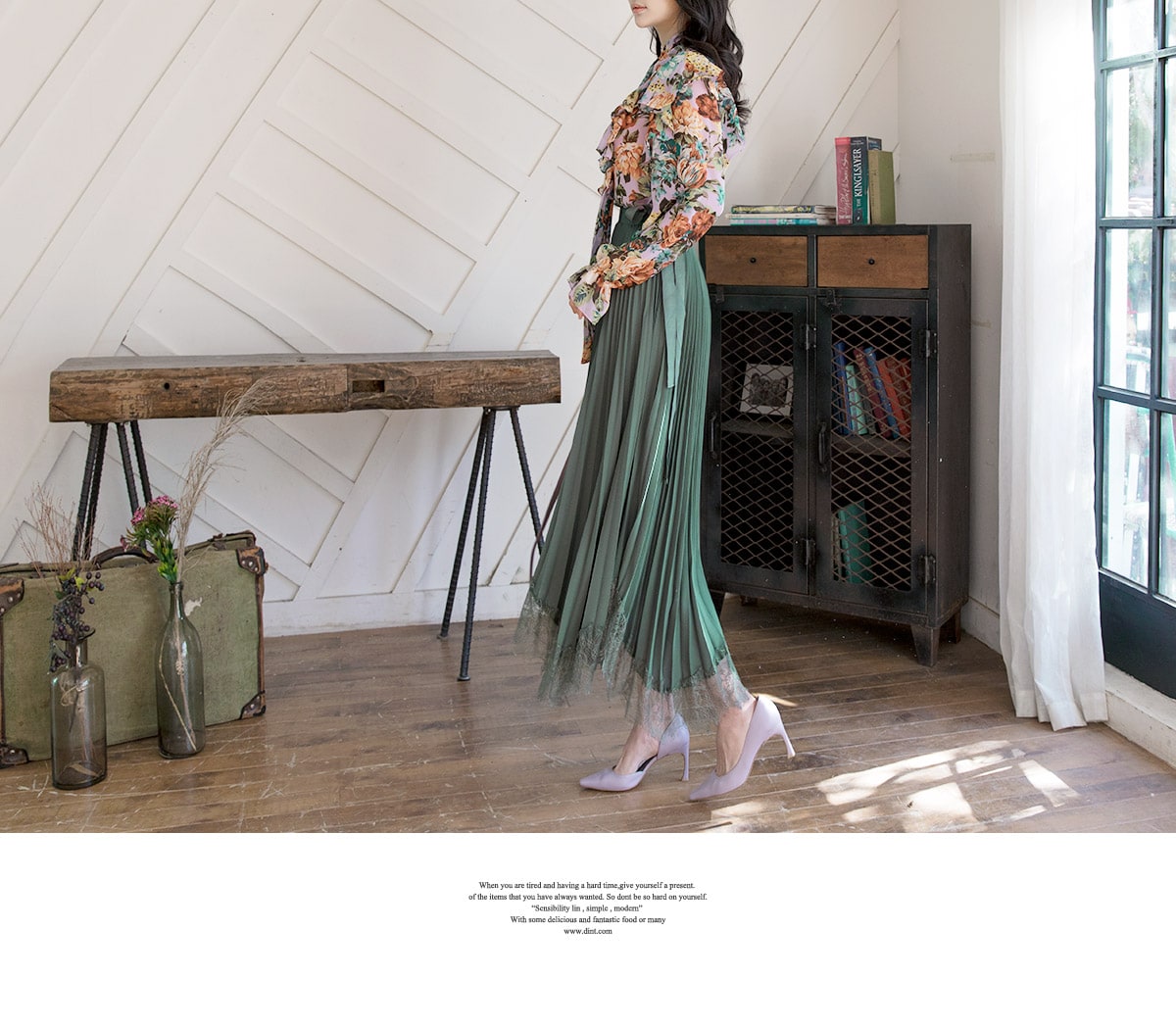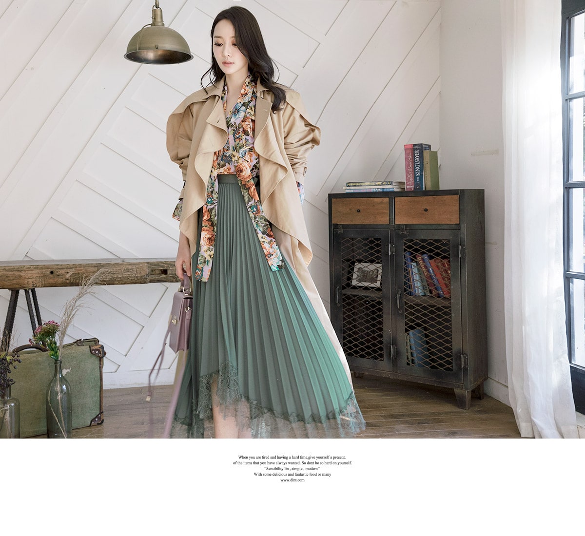 SK1673 레이스 트리밍 플리츠 스커트 Khaki