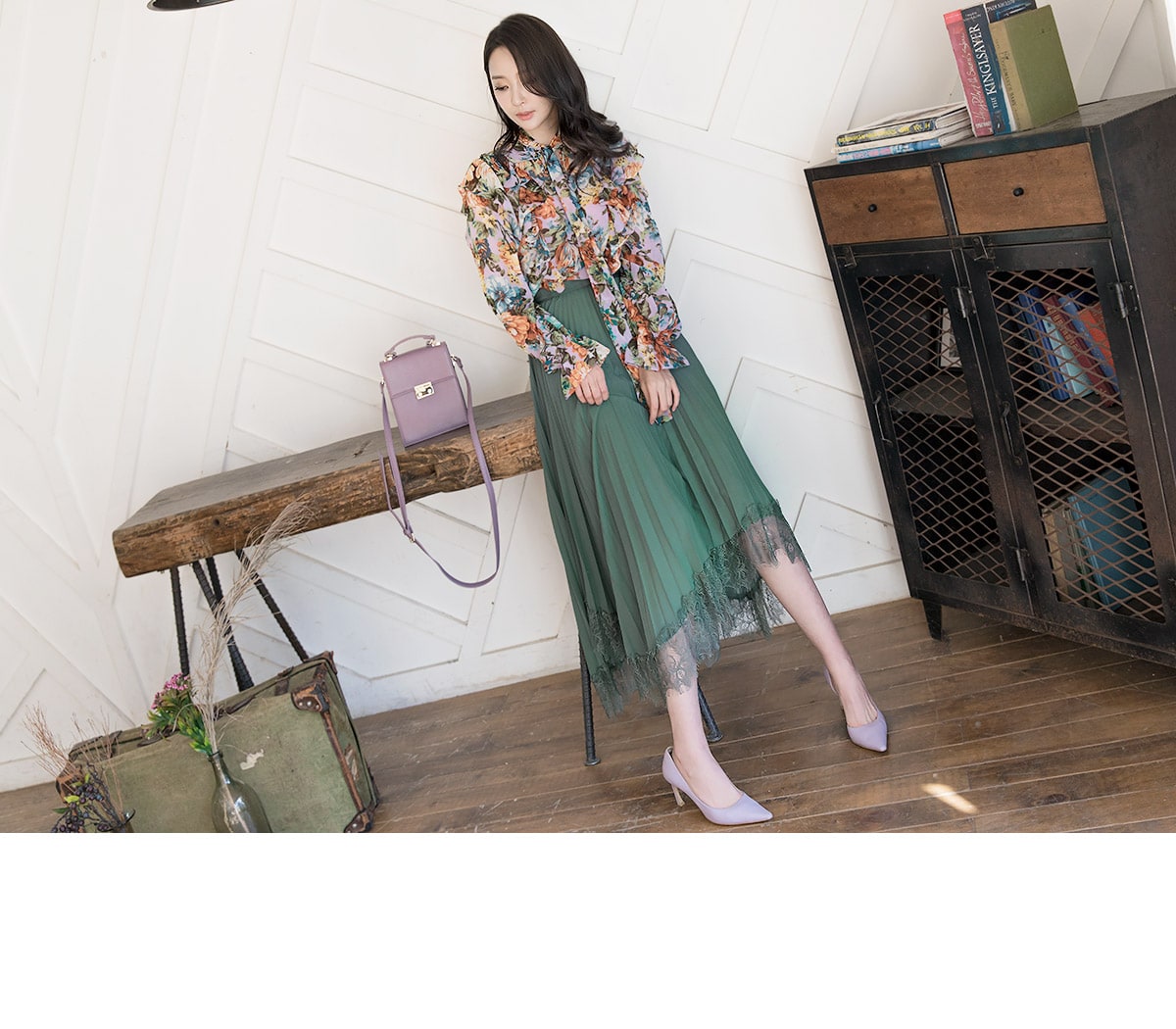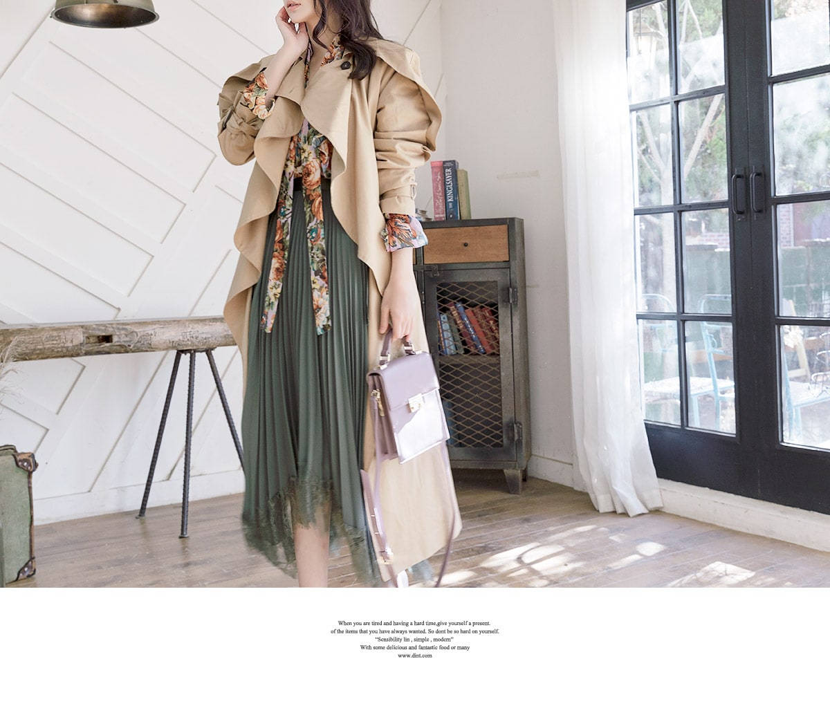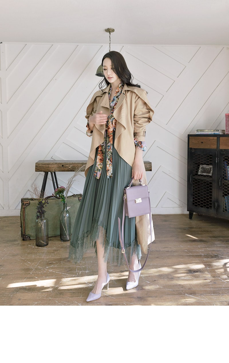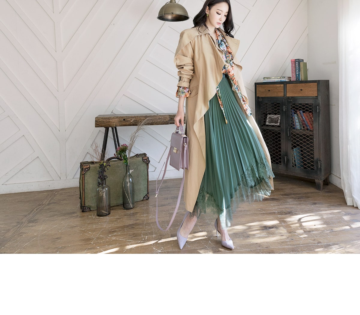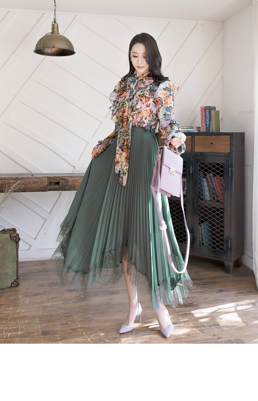 SK1673 레이스 트리밍 플리츠 스커트 Khaki