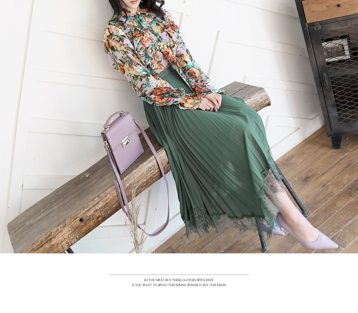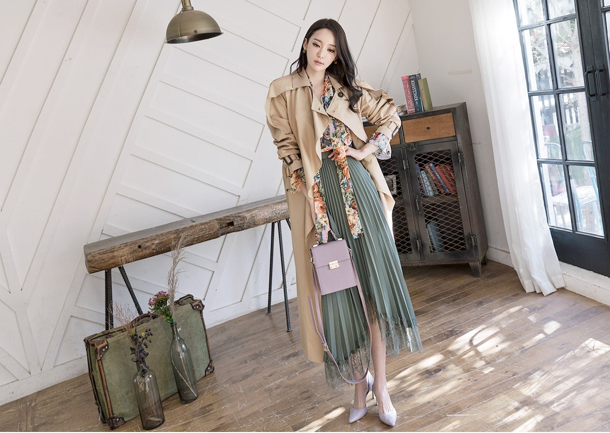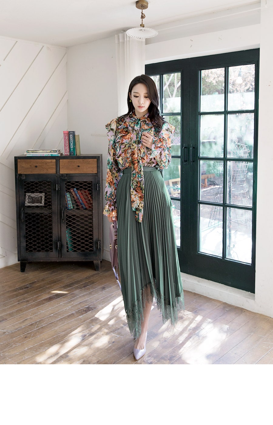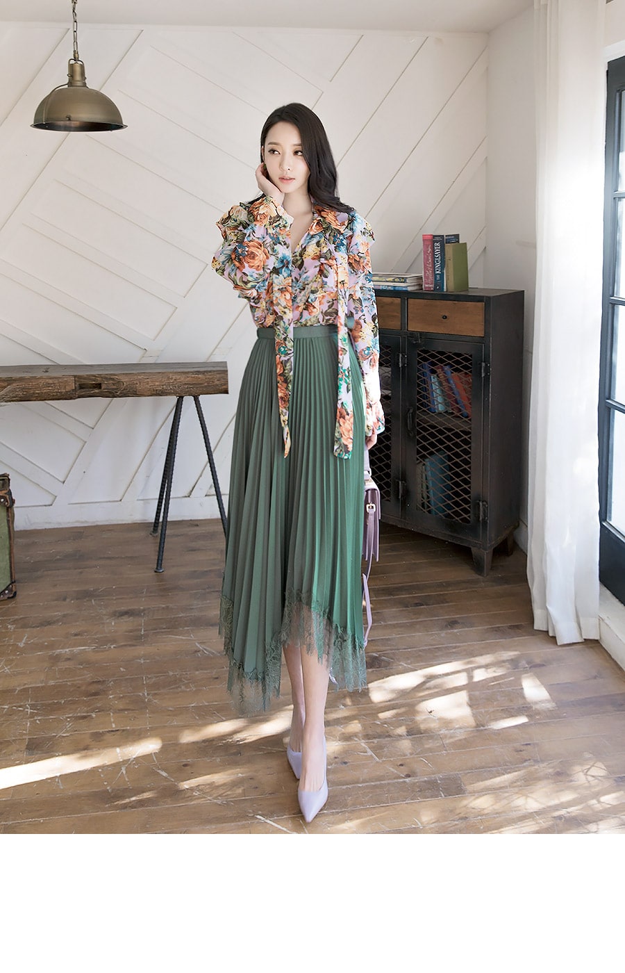 SK1673 레이스 트리밍 플리츠 스커트 Khaki