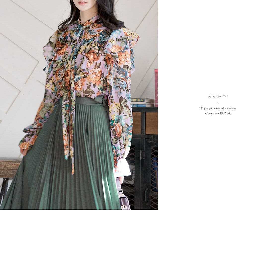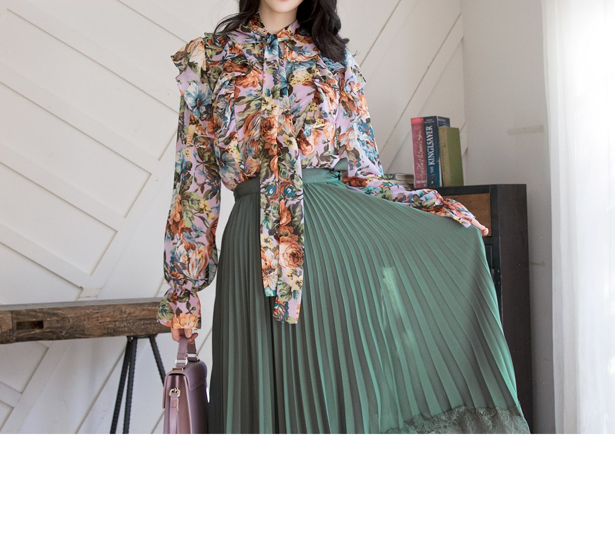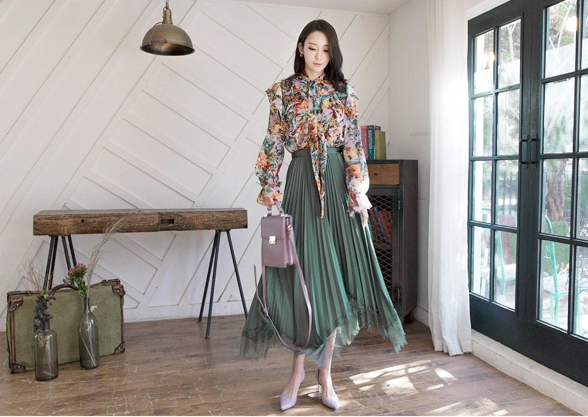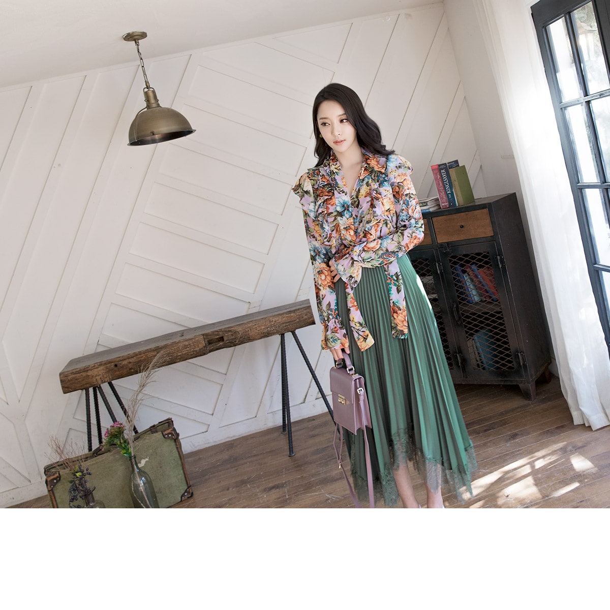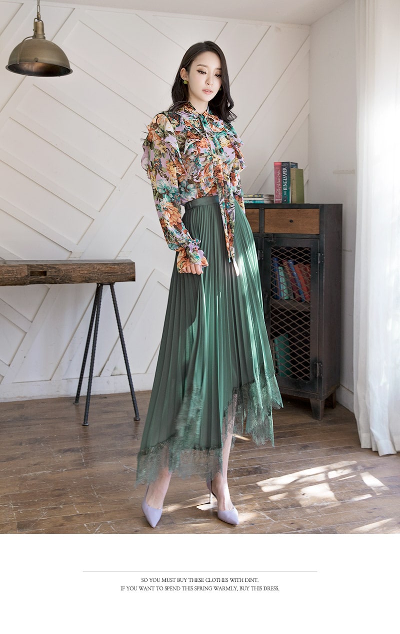 SK1673 레이스 트리밍 플리츠 스커트 Khaki