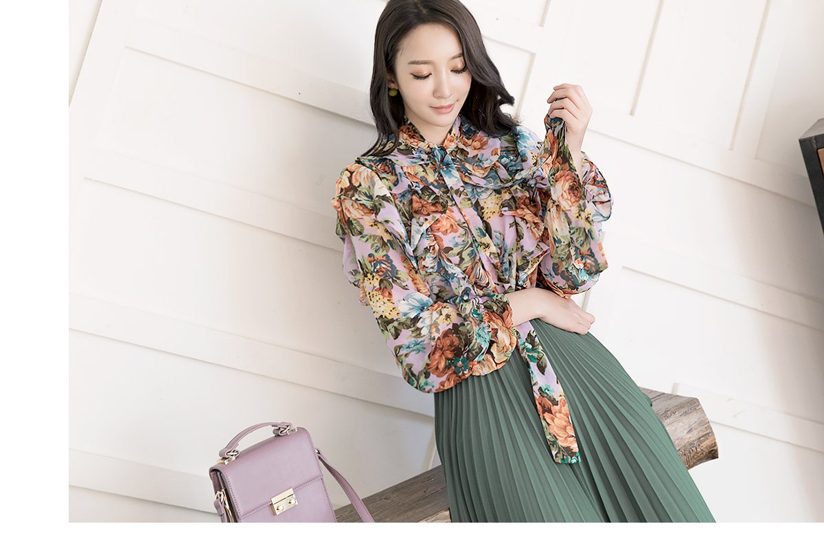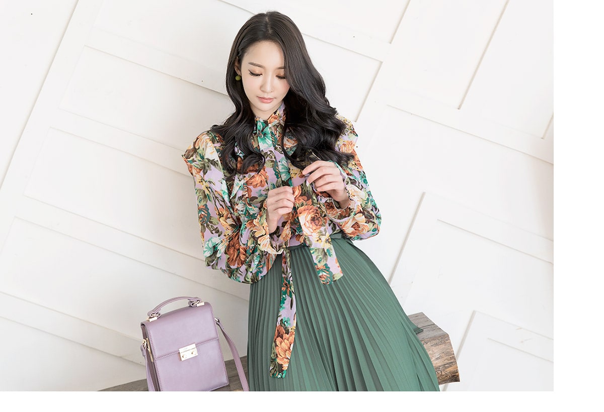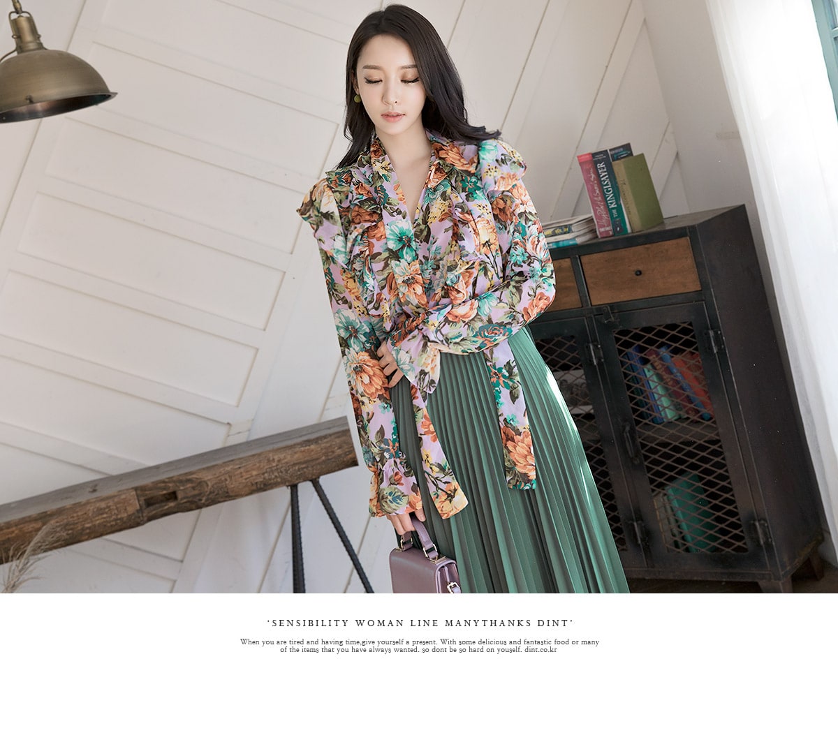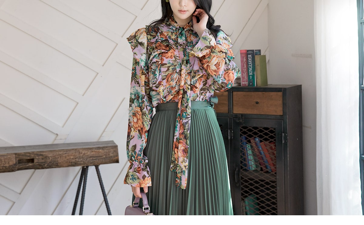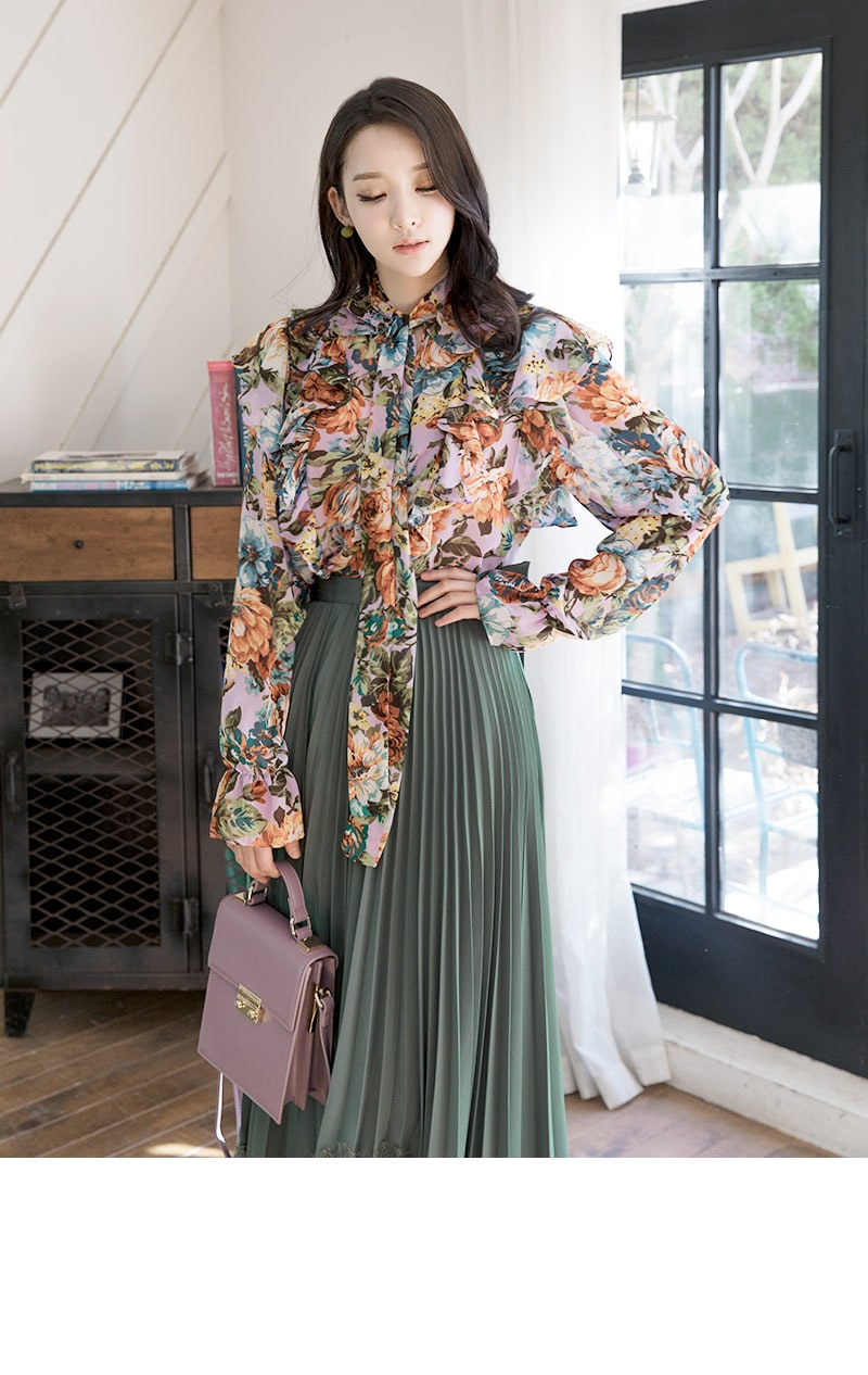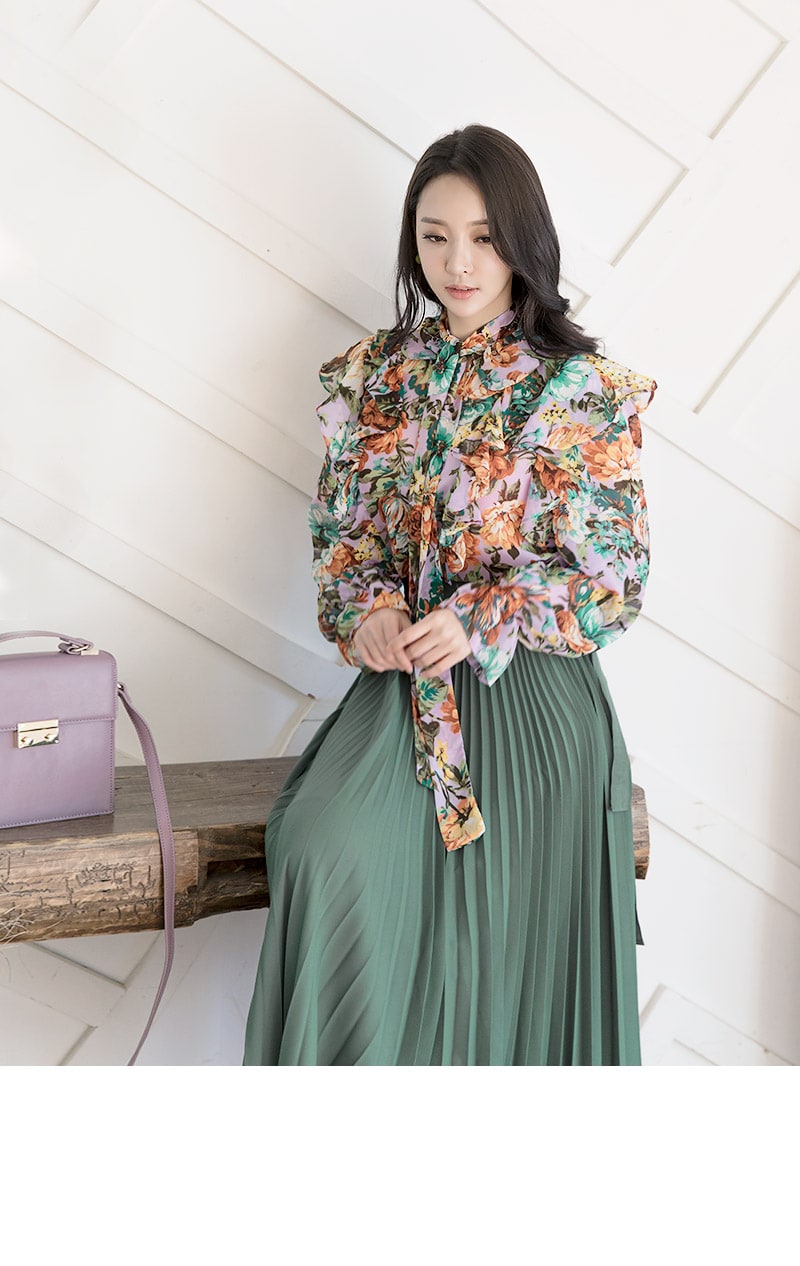 SK1673 레이스 트리밍 플리츠 스커트 Khaki