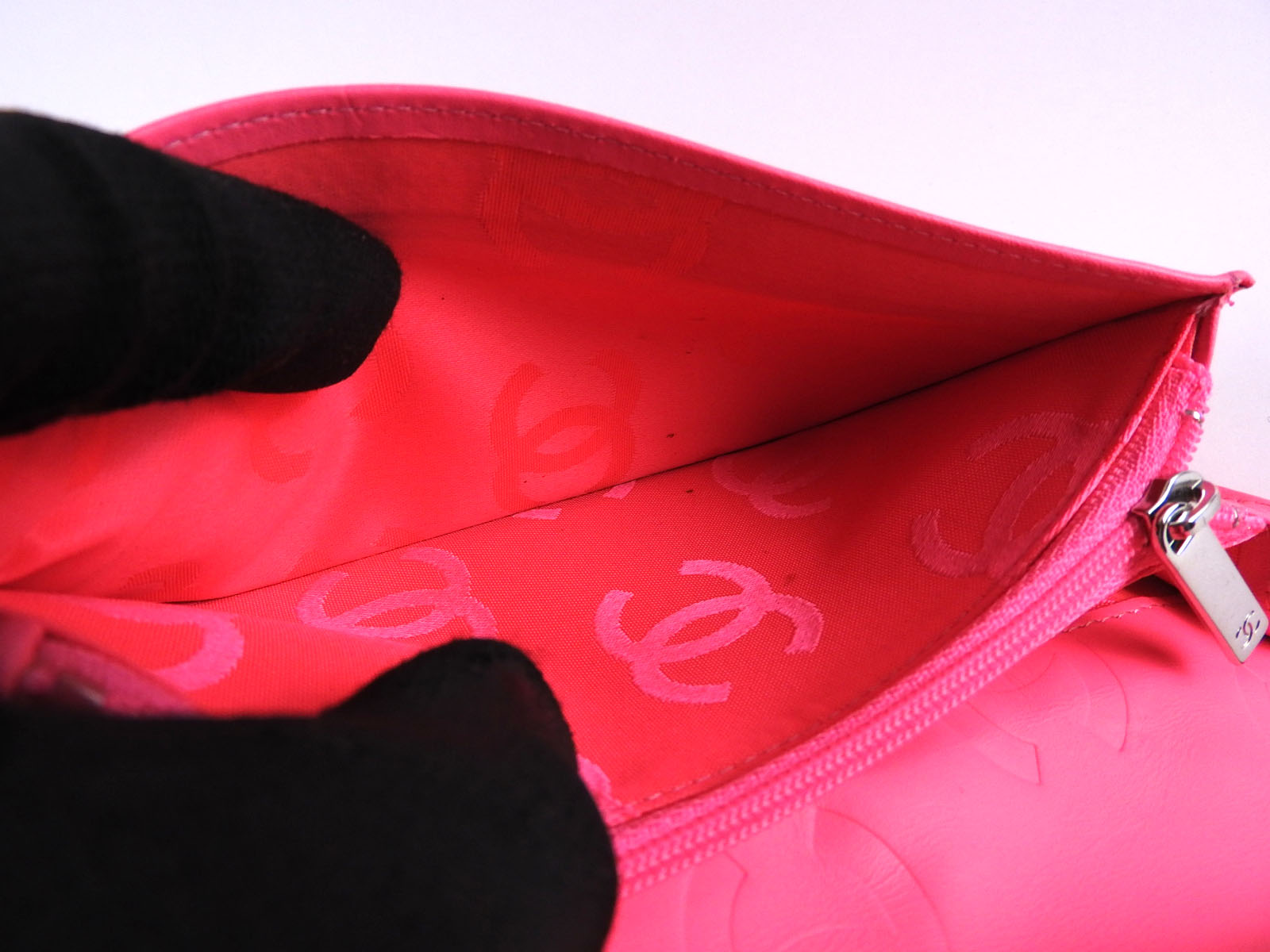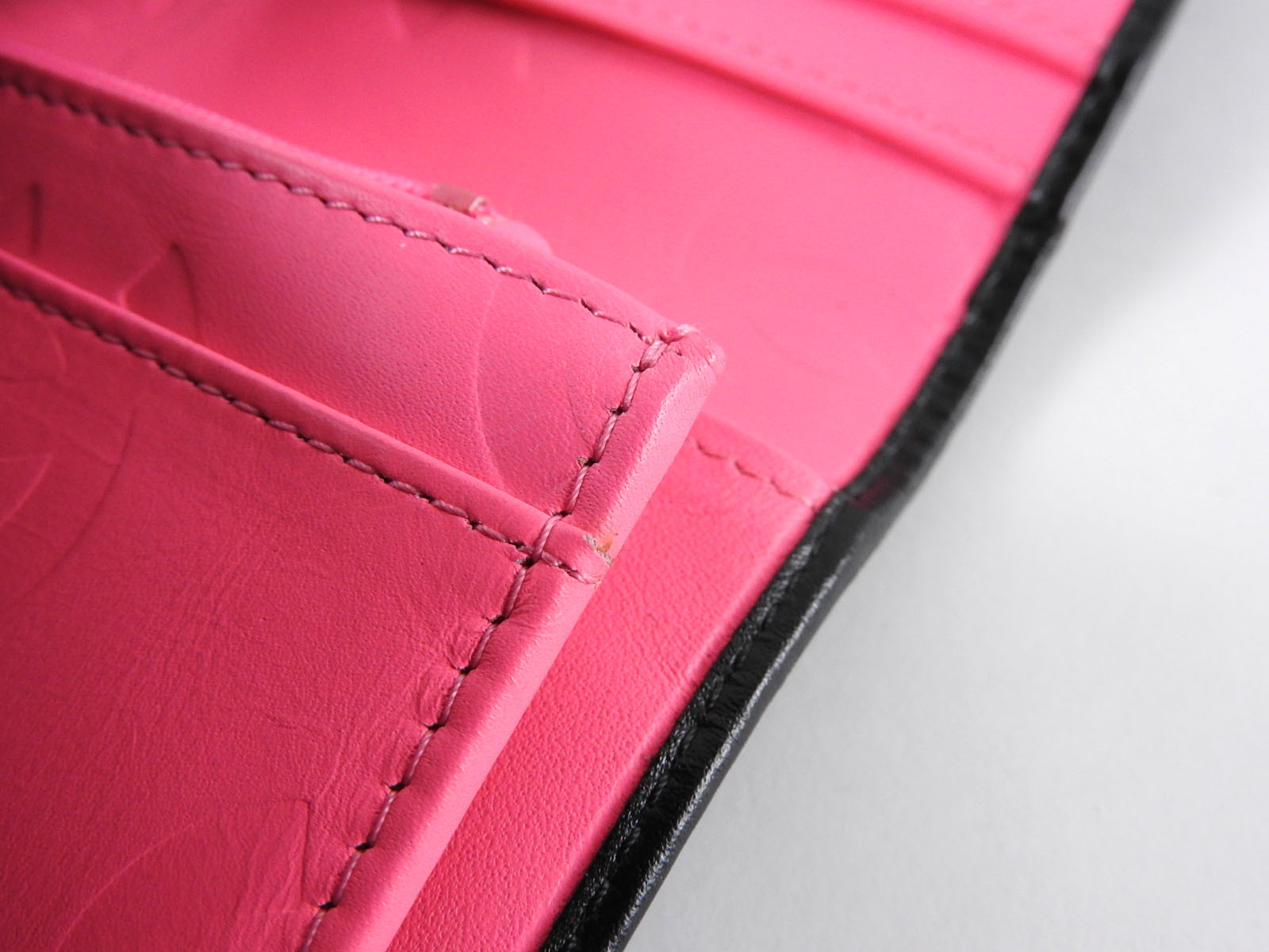 Coin purse: Mint. Almost brand new. The other pockets: Mint except for a few small bond stains in one of the open pockets. |