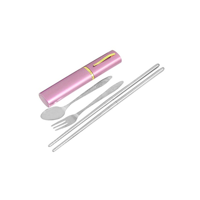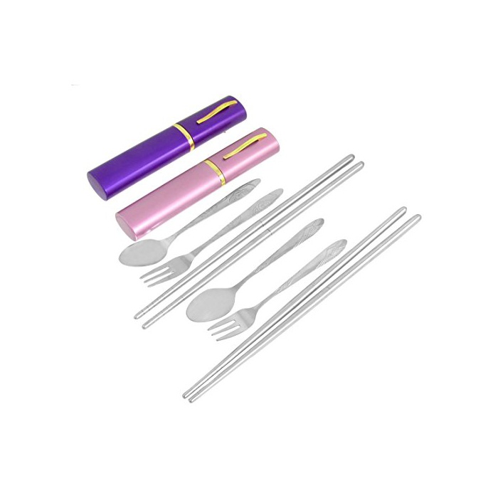 SODIAL(R) 2세트 스테인레스강 여행 스푼 젓가락 포크 식기 케이스 첨부 와