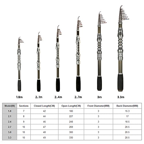 주의: 1,수작업에 의한 측정 를 위해,1?2cm(0.4?0.8인치)의 차이를 허락해 하십시오.2,리스트에는 낚싯대 만이 포함되고, 그 외의 아이템(있는 경우)서는 포함되어 있지 않습니다.사양: 재질:탄소 섬유 모델:1.8M / 2.1M / 2.7M / 3.0M / 3.3M(선택 옵션) 중량:152 - 253g / 5.4 - 8.9oz 팩키지크기:49 * 8.5 * 3cm / 19.29 * 3.35 * 1.18in 팩키지의 중량:165 - 265g / 5.8 - 9.3oz팩키지 리스트: 1 *낚싯대