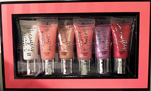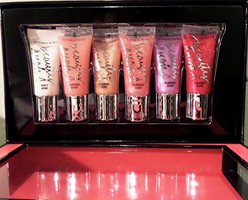-. Feature : Victoria's Secret Beauty Rush 6 Flavored Pieces Lip Gloss Gift Mini Set Let it shine with a sheer kiss of color in six delicious flavors, all wrapped up in a holiday gift box Flavors Includes: Strawberry Fizz, Mocktail Hour, So Jelly, Punchy,Candy Baby and Minty Kiss Gives your lips a sheer kiss of delicious color and shine. 8.5 g/.3 oz. each