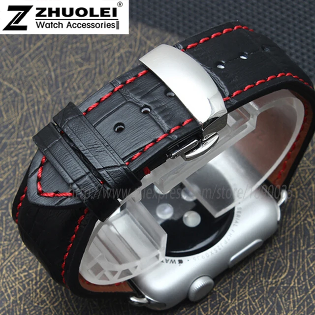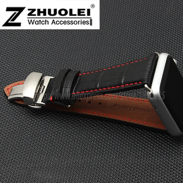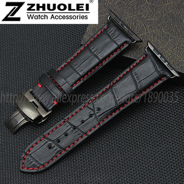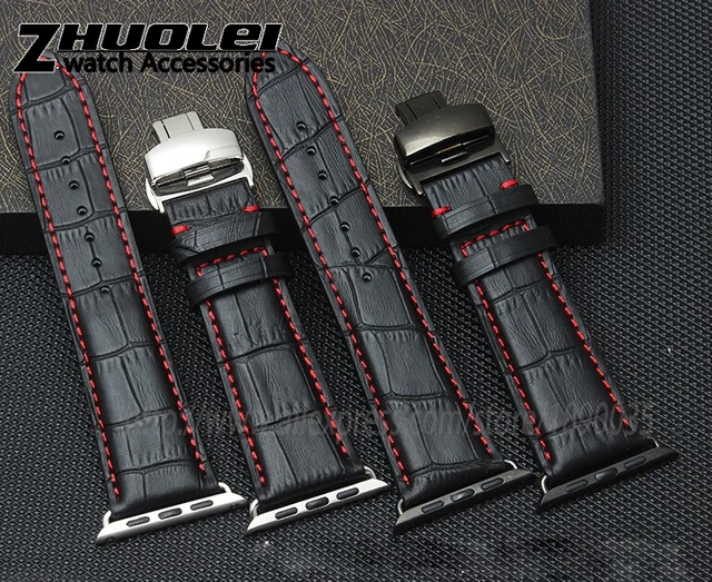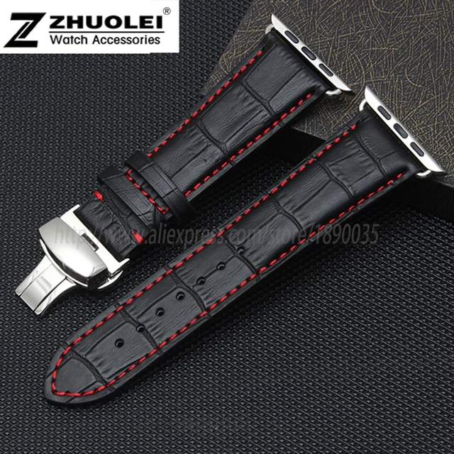 | [해외]새로운 도착 정품 가죽 스트랩 팔찌 iwatch 대나무 템플릿 butterfly 버클 팔찌 38 42 미리메터 포함하는 링커 |