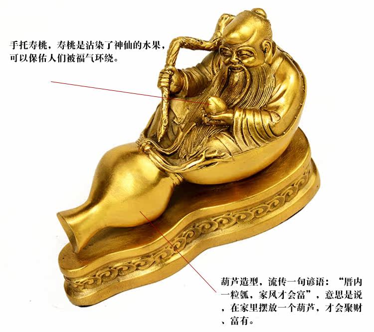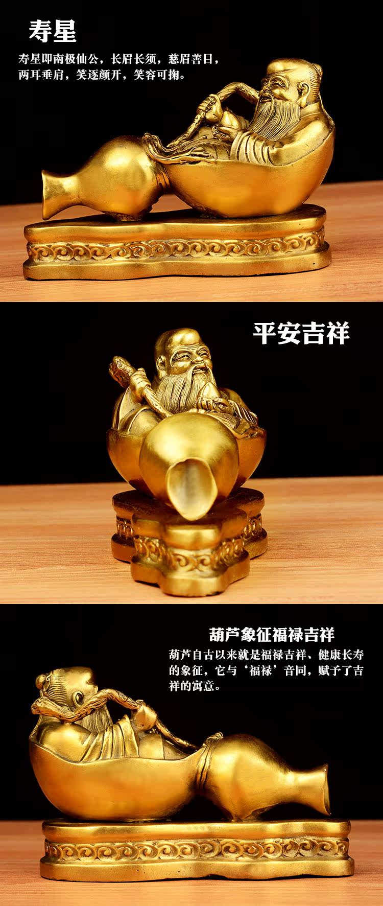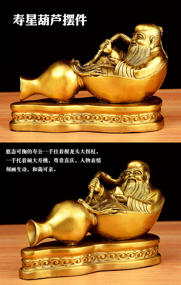 开光吉祥物葫芦寿星摆件家居风水老寿星铜葫芦家居装饰品