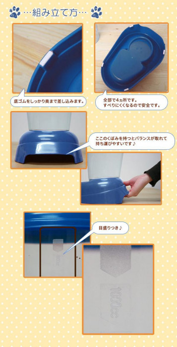たっぷり3Lの大容量で、お留守番をさせる時や多頭飼いに便利☆一定の量が下部から出てきます。分解して水洗いができるのでお手入れも簡単です☆