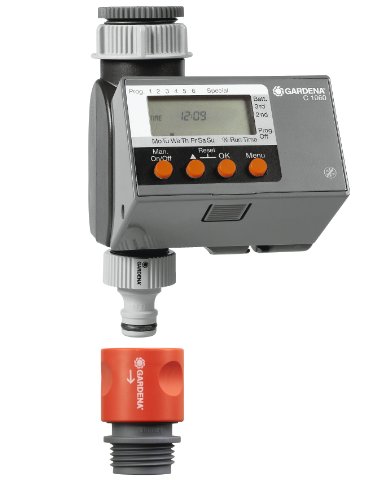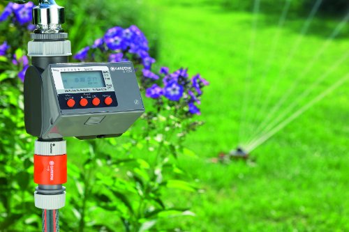 -. Feature : Gardena 6-cycle water timer with large display is simple to program / Gardena 6-cycle water timer watering days are freely selectable / Approximately 1 year operation with one 9-volt alkaline battery (not included). / 4-colour presentation pack with battery level display / 1-year warranty; model 1840-U