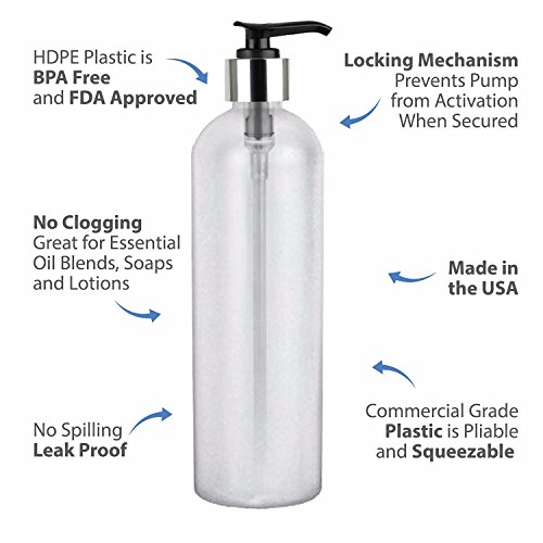 MoYo Natural Labs 4 oz Pump Dispenser, Refillable Empty Soap and Lotion Pump Bottles with Silver Locking Cap, BPA Free HDPE Plastic Containers...