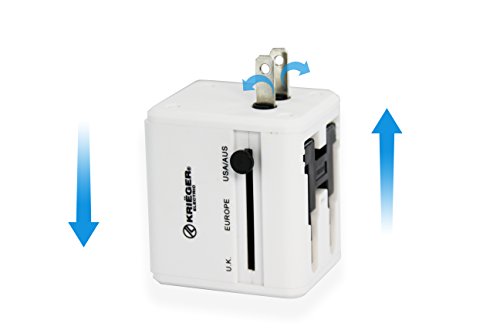 KRIEGER® advantage:universal conversion plug adapter with US/EU/UK/AU plugs,covering more than 150 countries,simultaneous usage of AC adapter and dual USB ports