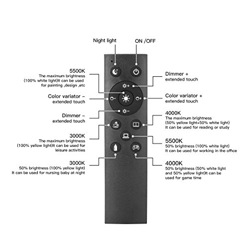 - 2 optional operation modes to power on/off and adjust the light intensity gradually without levels: endless possible settings, the last brightness setting will be stored in memory for your next use. 5 modes can be selected directly from remote control for a variety of tasks.