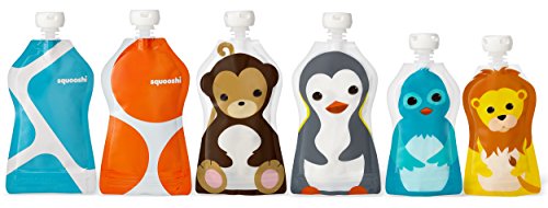 - Feature : EASIEST POUCH TO USE "COOLEST DESIGNS" "PERFECT SIZE TO HOLD" "MY KIDS WILL EAT ANYTHING OUT OF A SQUOOSHI" as reviewed by parents around the world! Join the Squooshi Family! Our straight forward shape with a top spout and wide bottom zipper allow you to easily fill your Squooshi pouches with your favorite squishy food by using a regular spoon or pour directly into the pouch. Seal & Go! / EASY TO USE - Our straight forward shape with a top spout and wide bottom zipper allow you to easily fill your Squooshi pouches with your favorite squishy food by using a regular spoon or pour directly into the pouch from your blender of choice. Fill. Eat. Wash. Repeat. It's that easy! / EASY TO CLEAN - Wash by hand with warm soapy water and a bottle brush or place in the top rack of your dishwasher. Bottom zipper & rounded shape allows for a complete rinse of water to stream through pouch. Bottom zipper allows for pouch to be fully opened to air dry. No corners or cracks for food to get stuck. / BETTER FOR THE PLANET - Squooshi resealable food pouches use less fuel in shipping than do pre-packaged food-filled pouches, and they are reusable, so they save energy and reduce waste, air pollution, and global warming. / MADE WITH FAMILY IN MIND - Made to last with durable, BPA, Phthlate, PVC & Lead Free with a no choke cap.