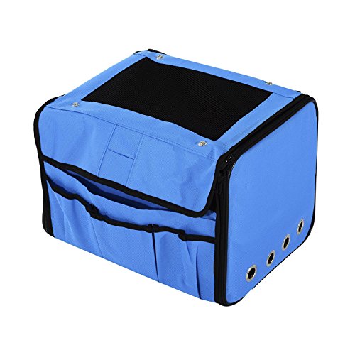-. Binding : Misc. -. Brand : Pawhut -. Feature : Made of waterproof oxford cloth and breathable nylon netting / Mesh top and side air holes offer increased ventilation / Four surrounding pockets (one large, three small) for extra storage space / Portable design folds together or lays flat for easy carrying and storage / Sides have zippers and a button closure at the top -. Label : Aosom Direct -. Manufacturer : Aosom Direct -. Model : D00-068BU-Parent -. MPN : D00-068BU-Parent -. PackageQuantity : 1 -. PartNumber : D00-068BU-Parent -. ProductGroup : Pet Products -. ProductTypeName : PET_SUPPLIES -. Publisher : Aosom Direct -. Studio : Aosom Direct -. Title : Pawhut Collapsible Folding Soft Portable Pet Crate Carrier