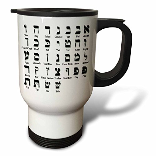 3dRose tm_203899_1 Print of The Hebrew Alphabet Travel Mug, 14 oz, White