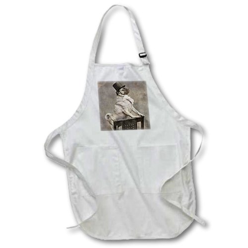 3dRose apr_6776_4 Pug in Top Hat Sepia Tone-Full Length Apron with Pockets, 22 by 30-Inch, Black