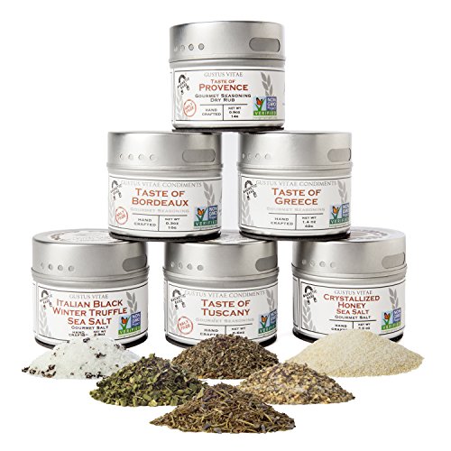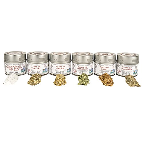 -. Title : Luxury Gourmet Seasonings, Spices & Italian Black Truffle Sea Salt Collection | Non GMO Project Verified | 6 Magnetic Tins | Small Batch Spice Blends