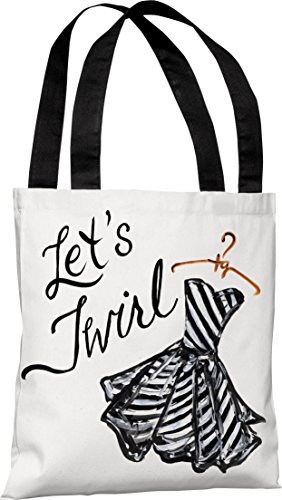One Bella Casa Let's Twirl Dress/Stripes Tote Bag by Timree Gold, 18"x 18", White/Black