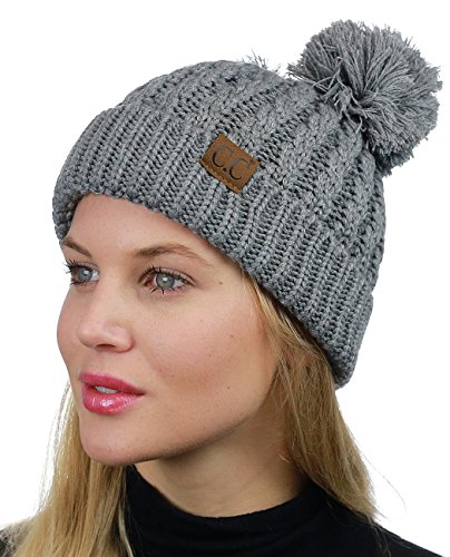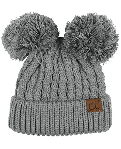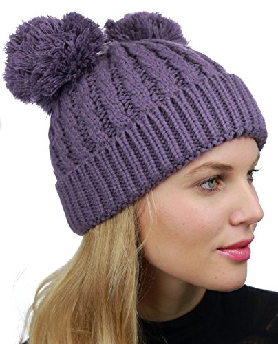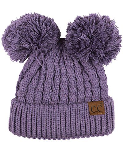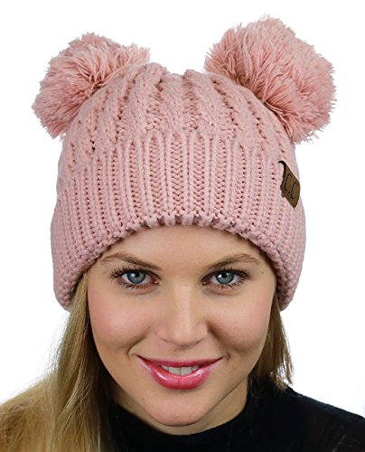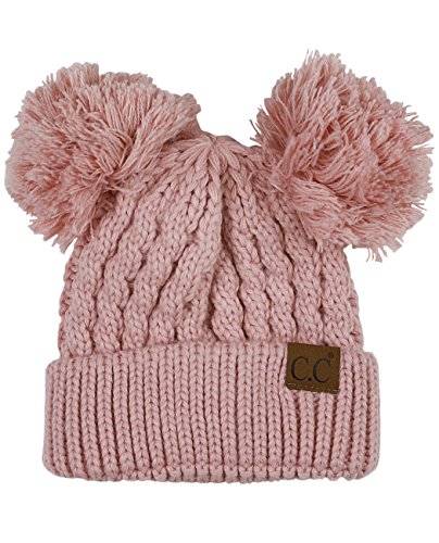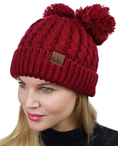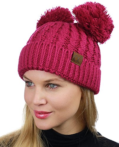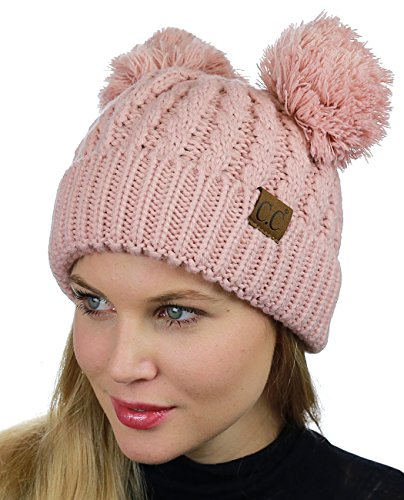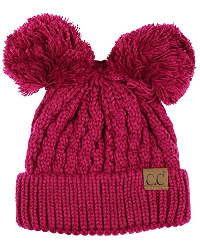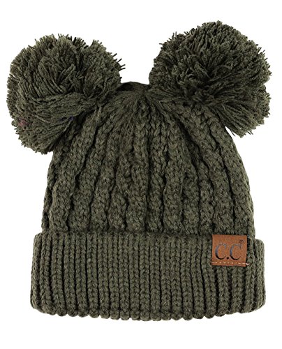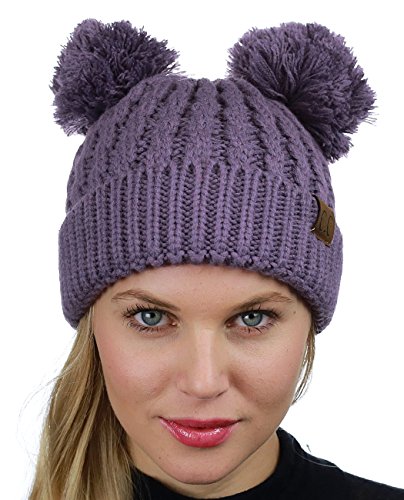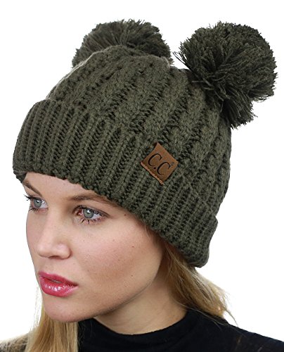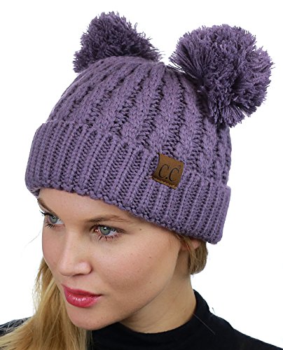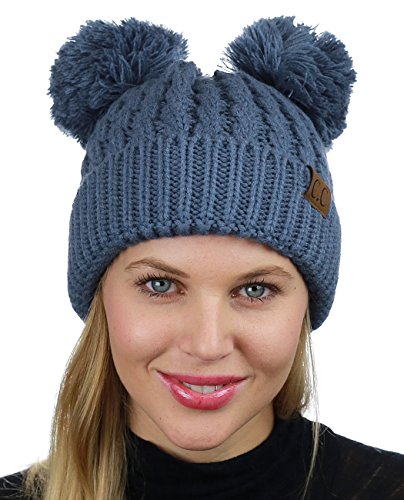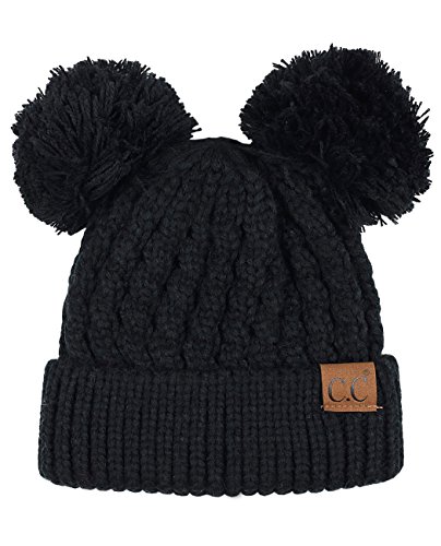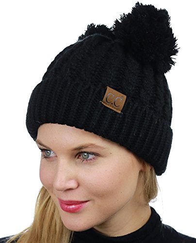 C.C 2 Ear Pom Pom Cable Knit Soft Stretch Cuff Skully Beanie Hat