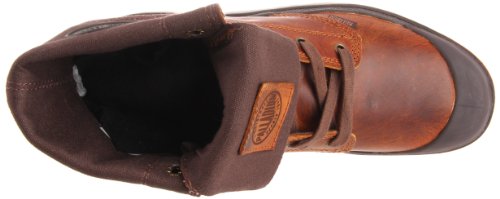 Heavyweight, veg. re-tanned leather natural surface appeal enhanced with a semi-bright luster. Two-piece; hugging heel cup and thick die-cut EVA create a comfortable stepping ground. One-piece molded rubber outsole. Laser Etched logo on the tongue. An additional laser etched leather patch visible on the turned tongue , as well as a uniquely applied rubber patch on Lateral side of both shoes on the turned down collar lining.Feature