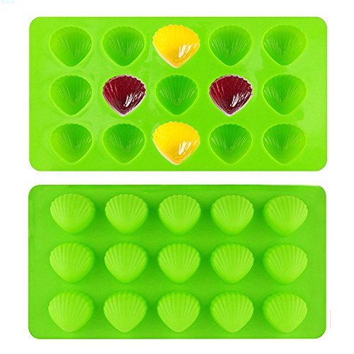 - WHAT IN THE PACKAGE :The Green mold - 15 shell grooves ,The Yellow mold - 15 star grooves ,The Blue mold - 15 heart grooves ,size of the three mold is :20.5 x 10.5 x 1.6 cm.(NOTE : YOU CAN GET 20% PERCENT OFF WITH THE CODE 57HNEL2Z FOR EACH Silicone Candy Molds )